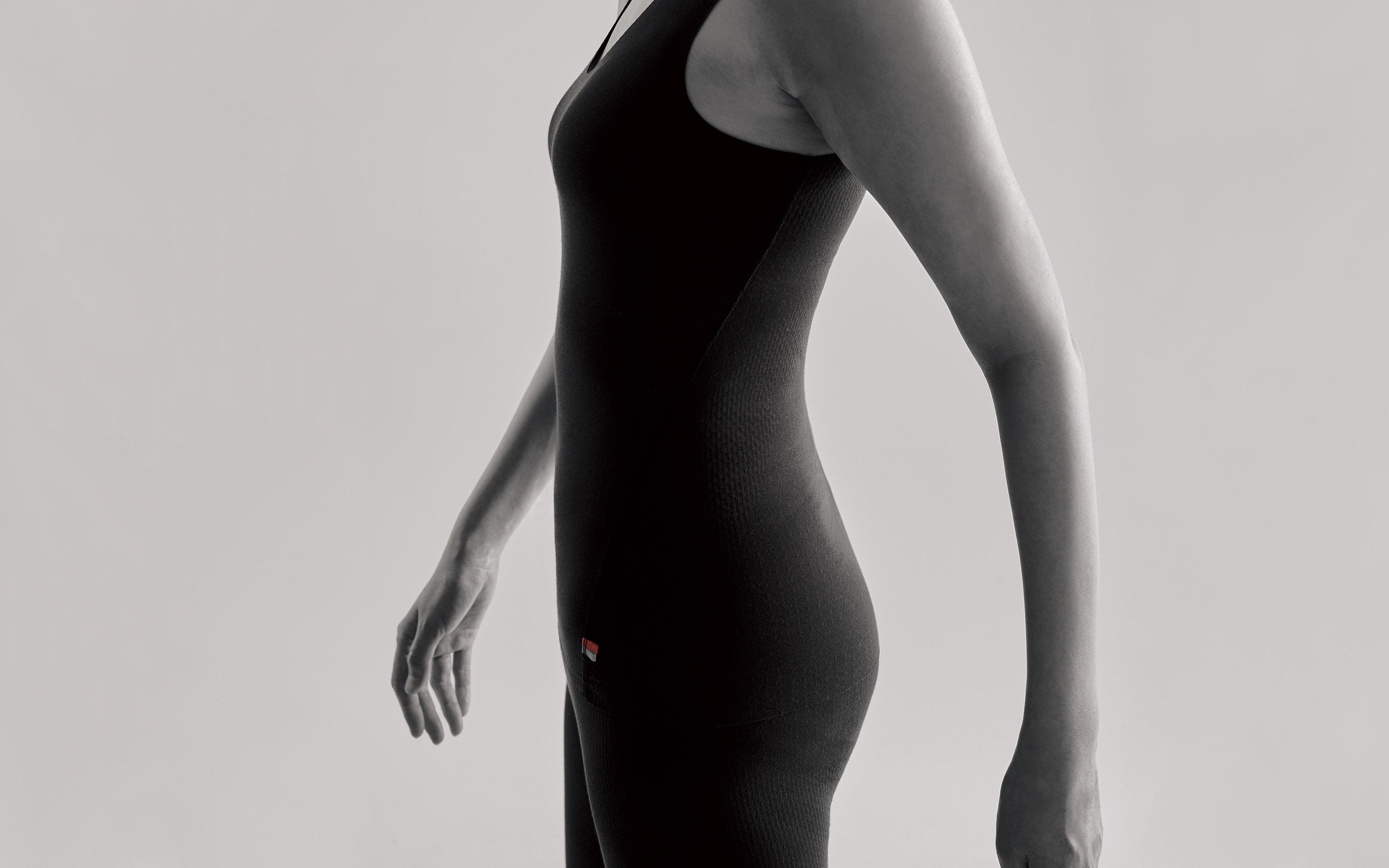 With a 3D form designed to be easy to move in, and an inside adorned with a leading line (special resin print), this BASEWEAR can promote deft and beautiful movement. By moving your body in the right way, you are less prone to pain and injury, and by living an active life, you can help make your everyday life more pleasant.